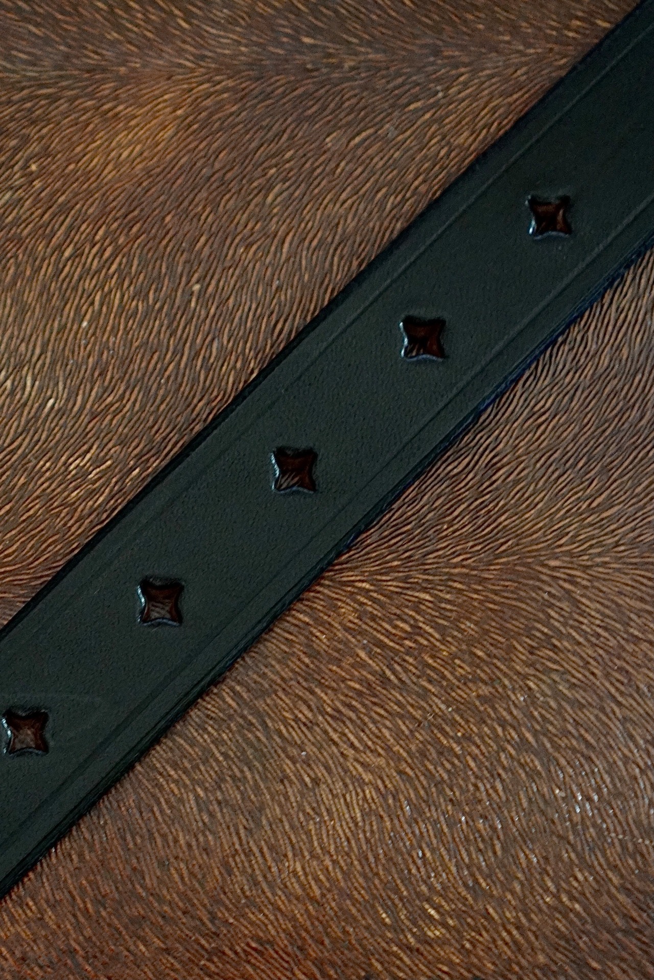 ベルトには肉厚な茶芯染めのカウハイドを使用。