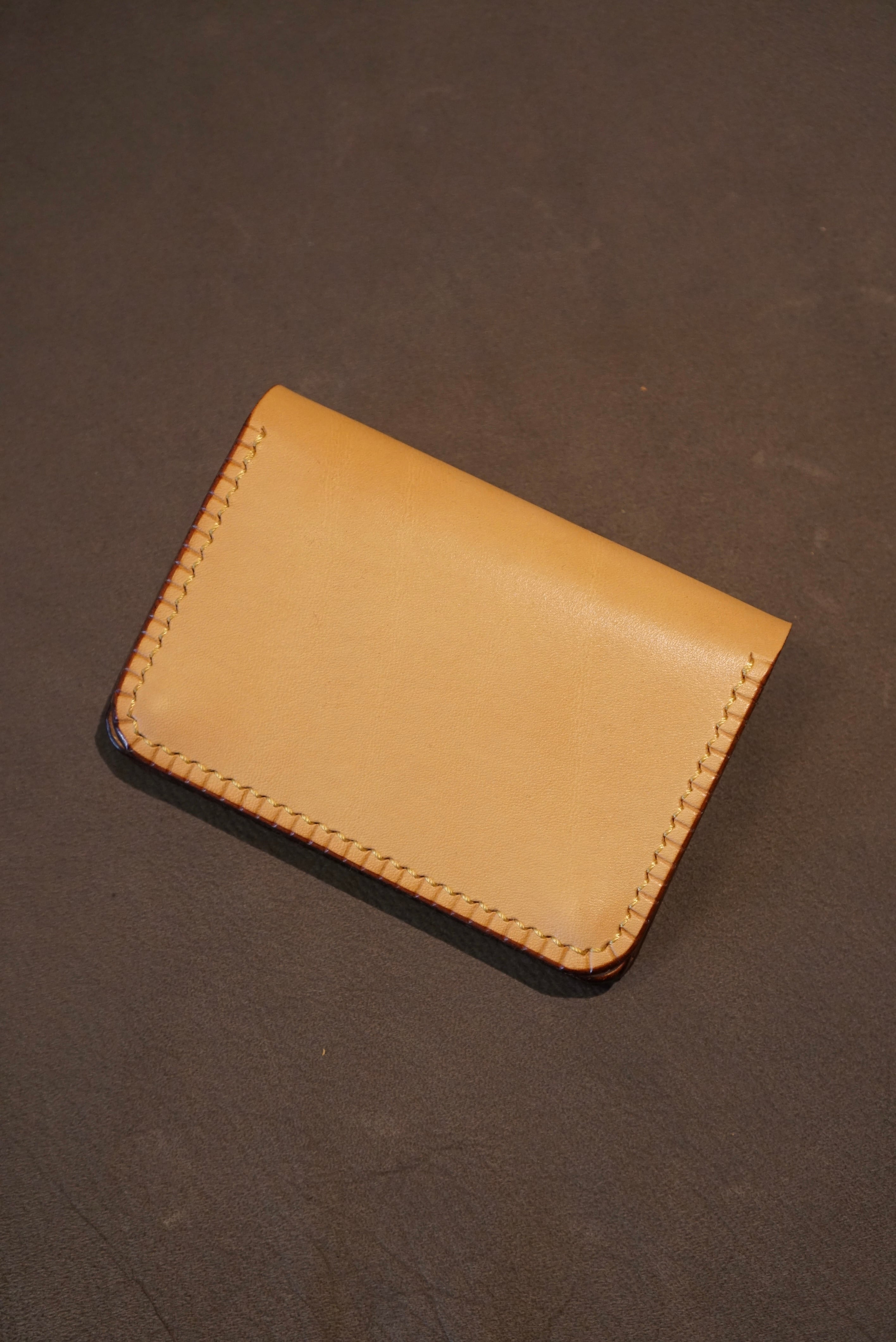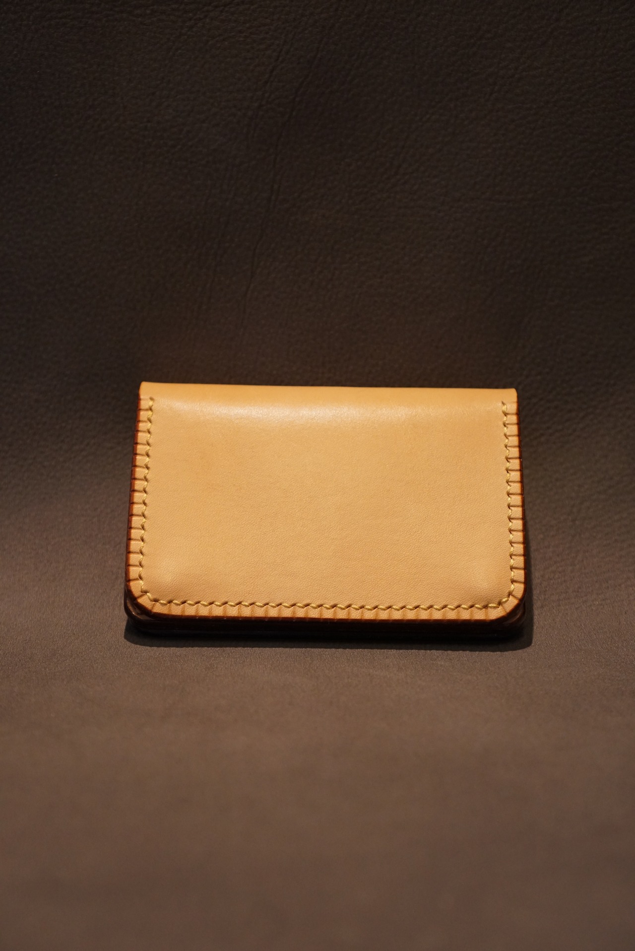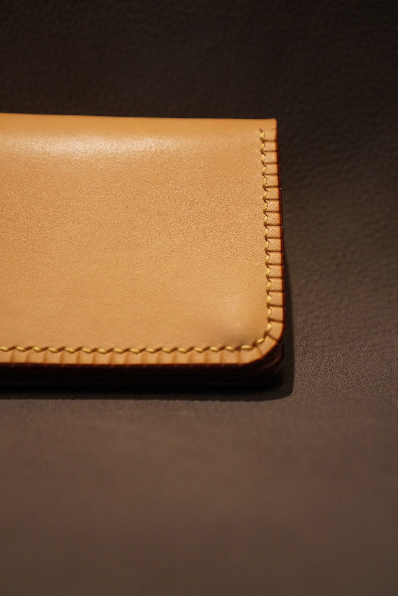 天然ヌメ革の柔らかな風合いに明るい黄色いス テッチがアクセントとなった財布。