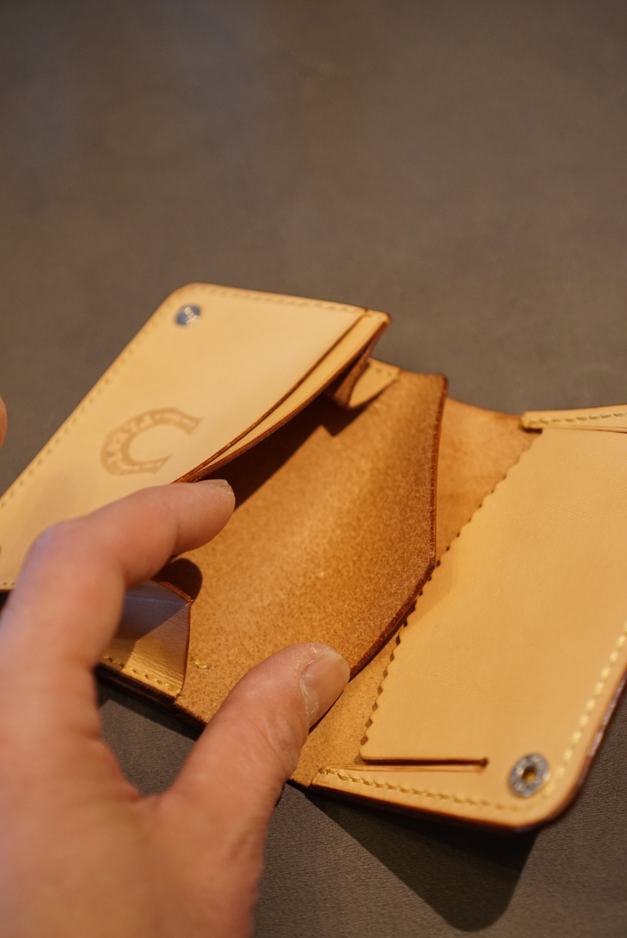 フランス製の革をイタリアで天然の植物タンニンでなめされたヌメ革。自然な風合いは使用していくうちに艶や色、深みが増していく。使う人の手で育てる財布。