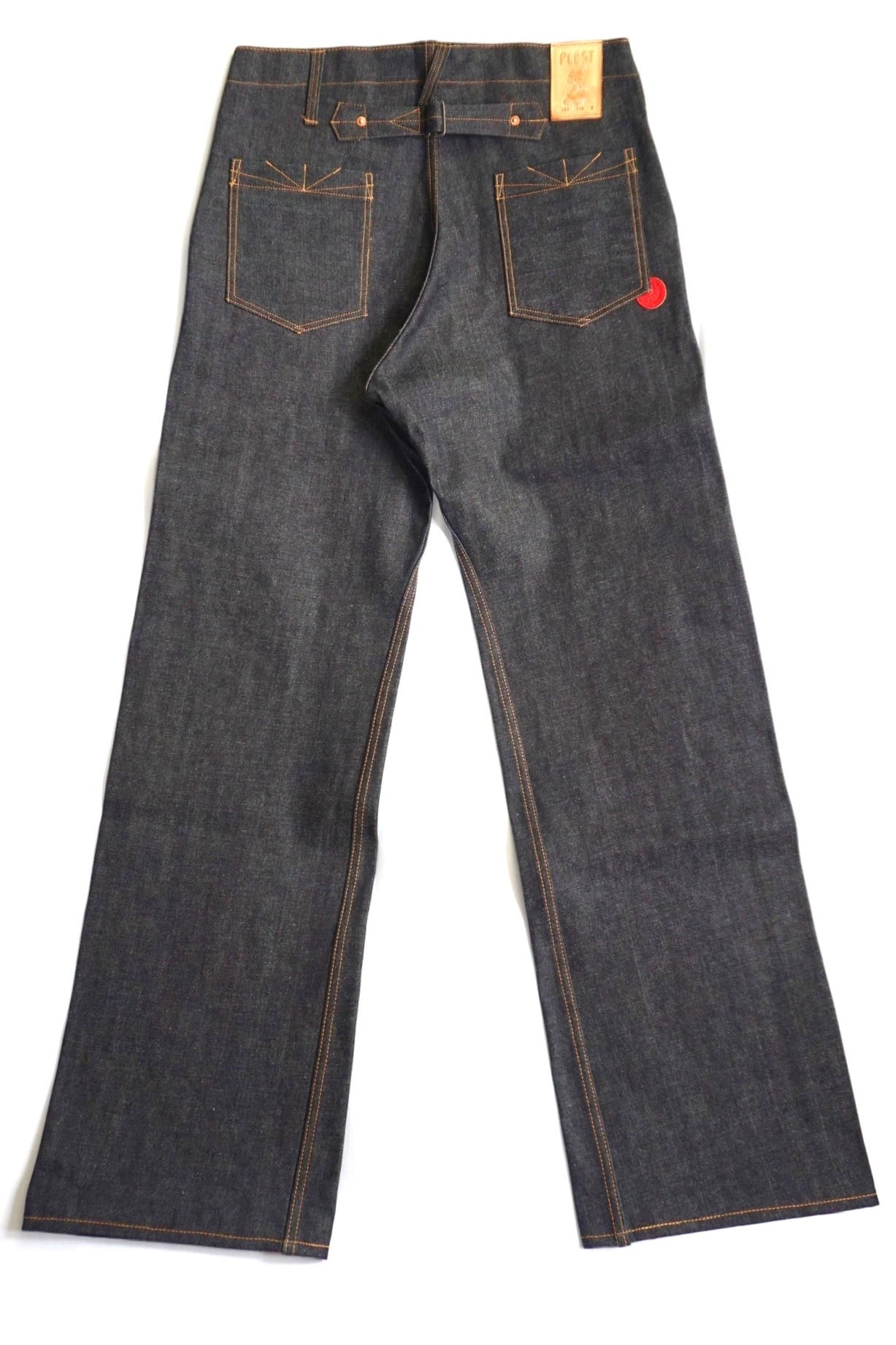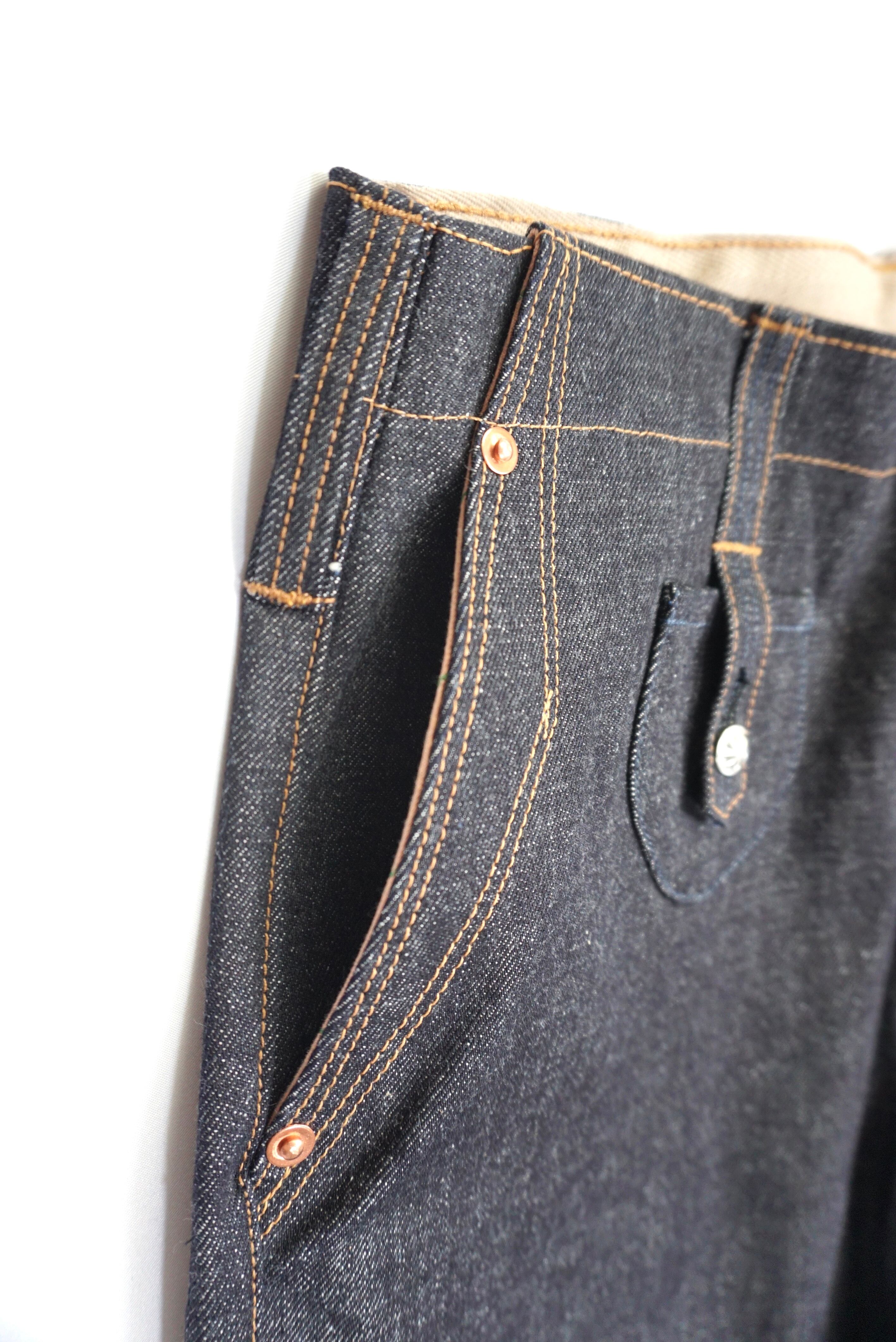 シルバー925のオリジナルボタンを装着したスペシャルデニム。