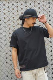 ・オリジナルロゴワッペンは、渋柿染めに鉄を結合させ、ムラ感のある黒に染色。渋柿染めは空気や日光にさらされることでより濃く経年変化していく。