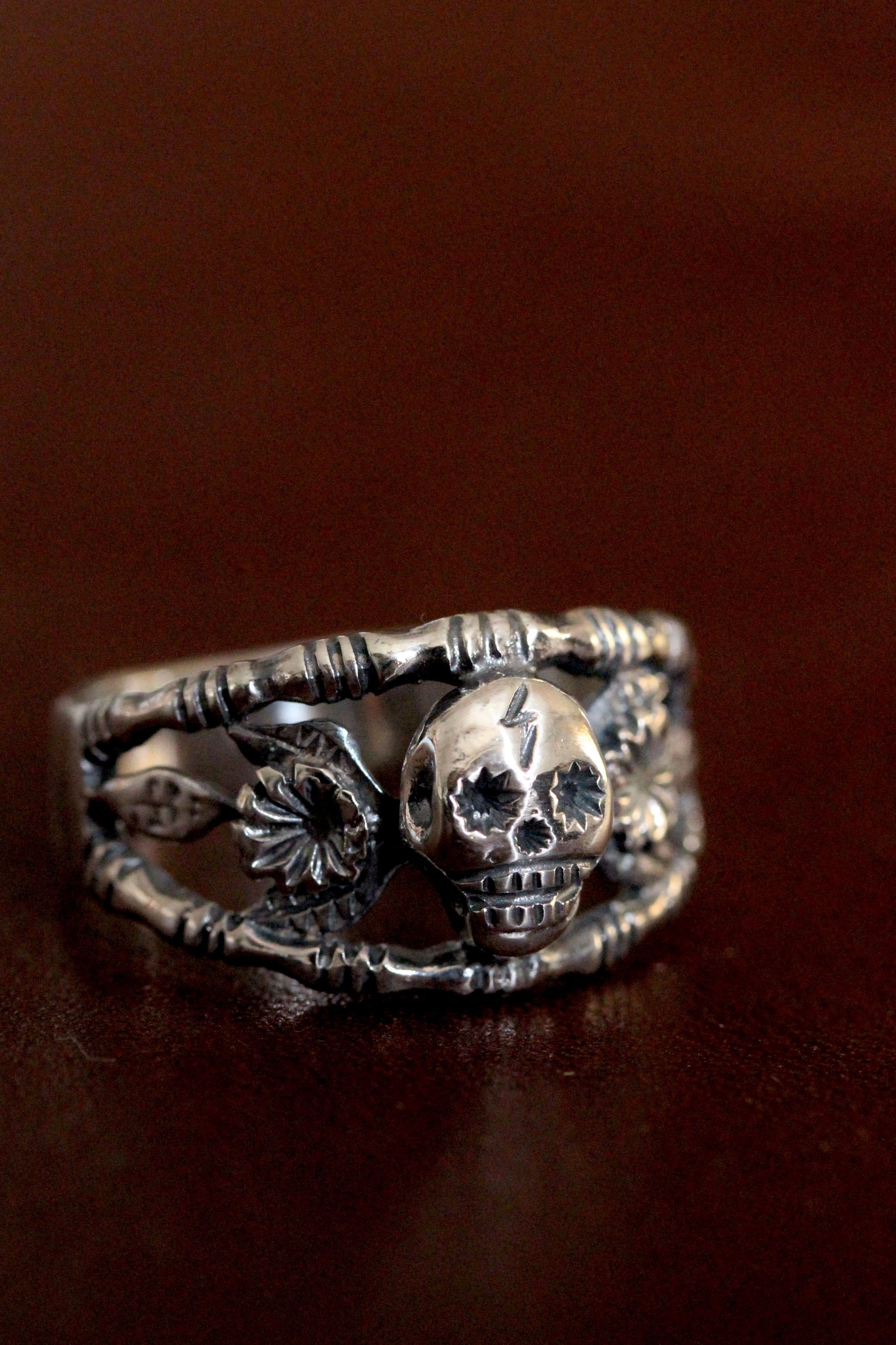 自分の周りの自然や環境があるから自分が笑っていられるんだ。ハッピーでいられる。そんな感謝も込めて明るいイメージで作ったハッピースカルリング。