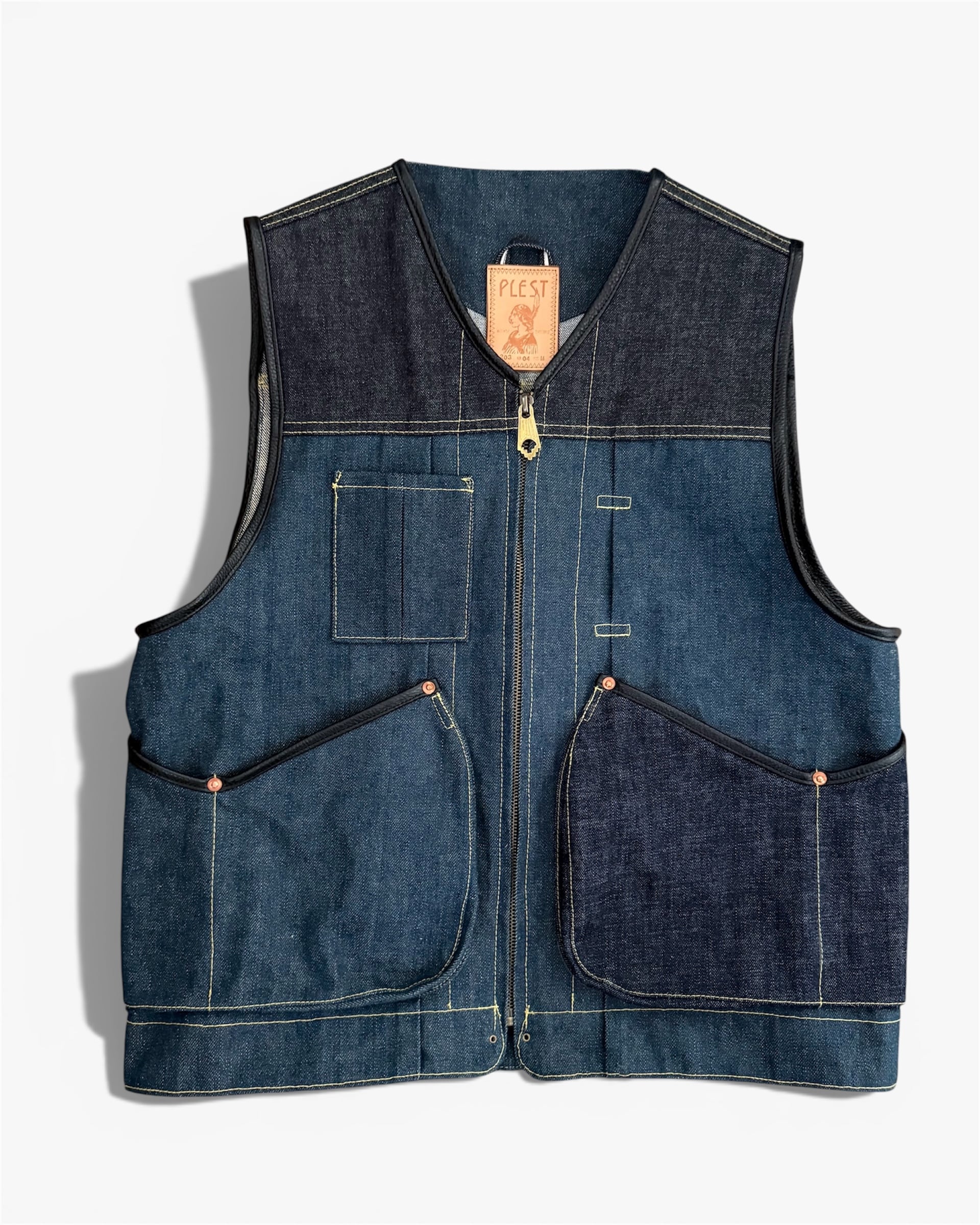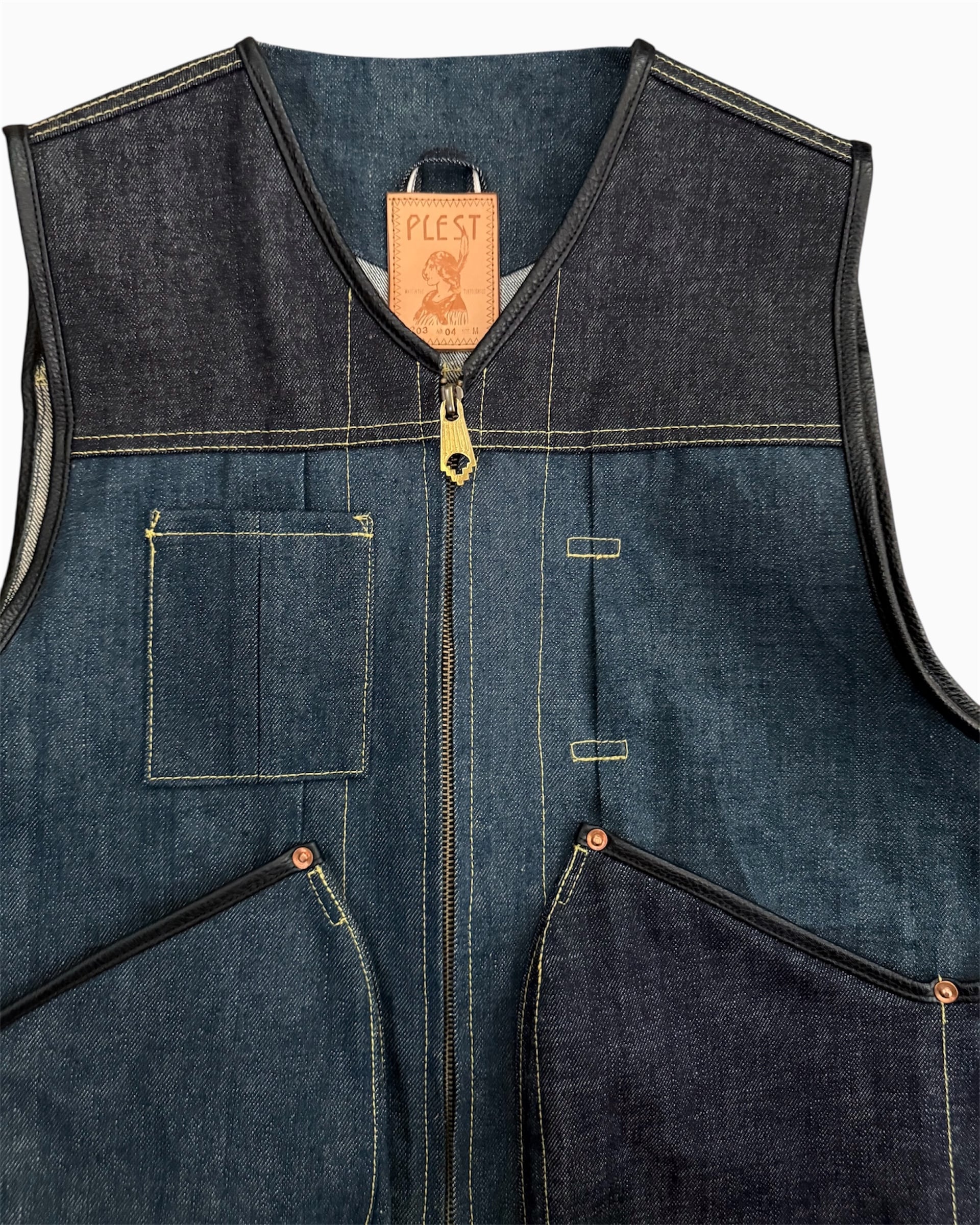 PLEST DENIM 203 ZIP UP VEST INDIGO
