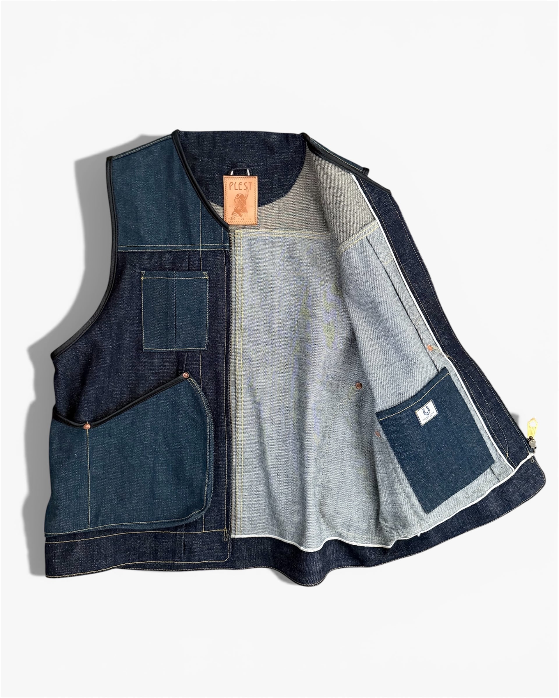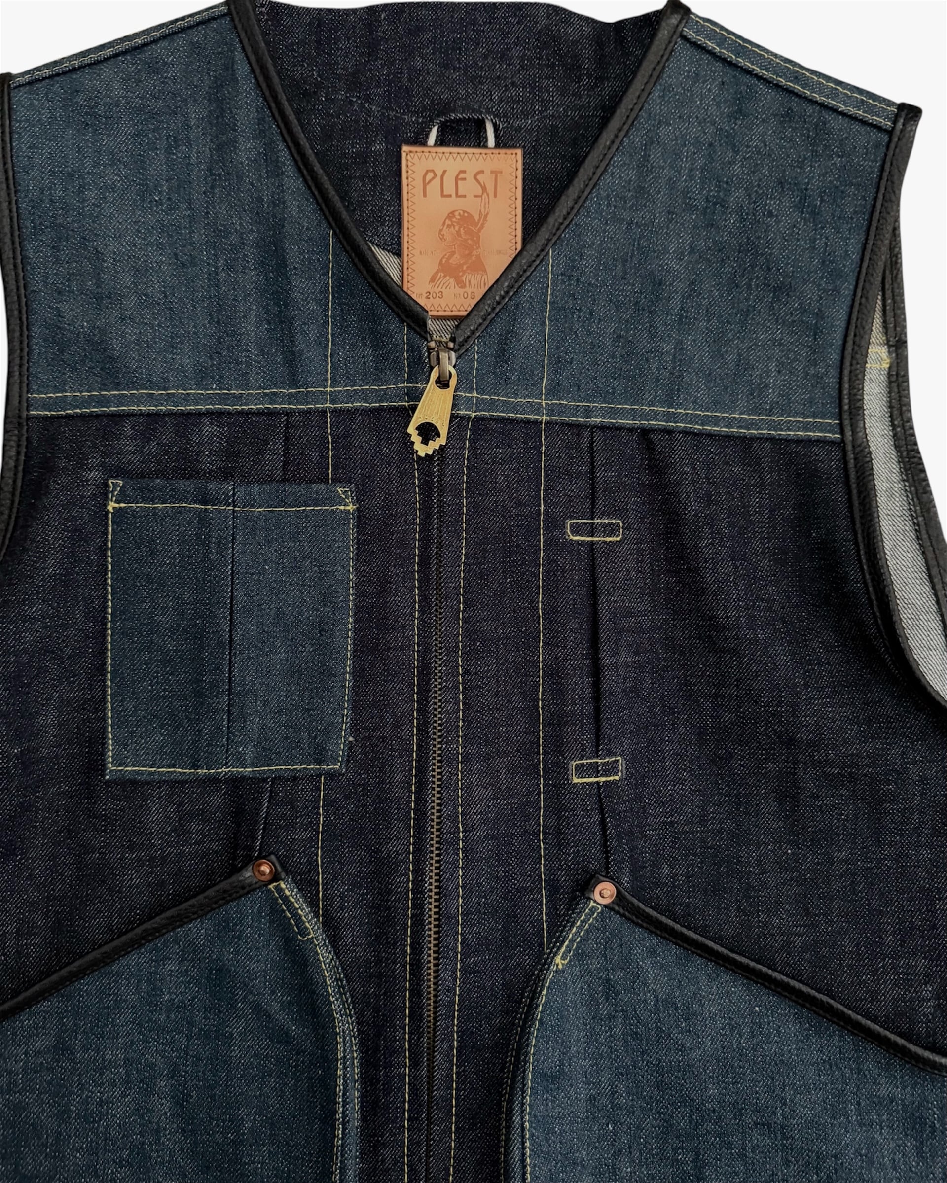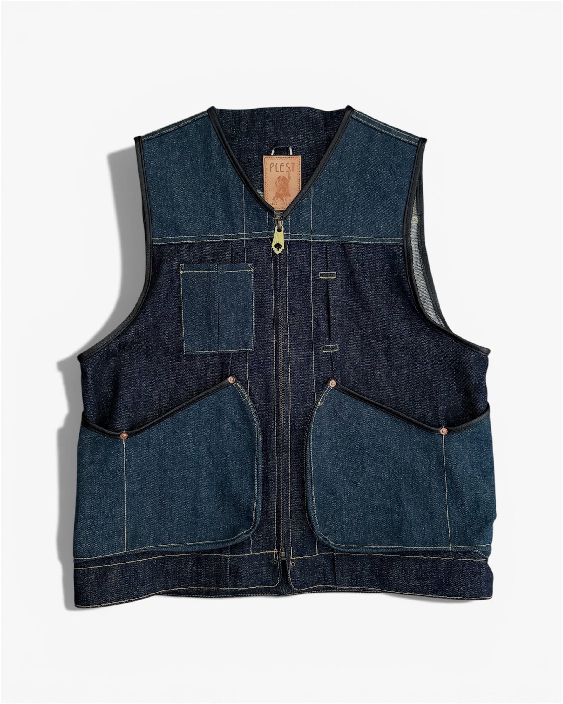 PLEST DENIM 203 ZIP UP VEST INDIGO