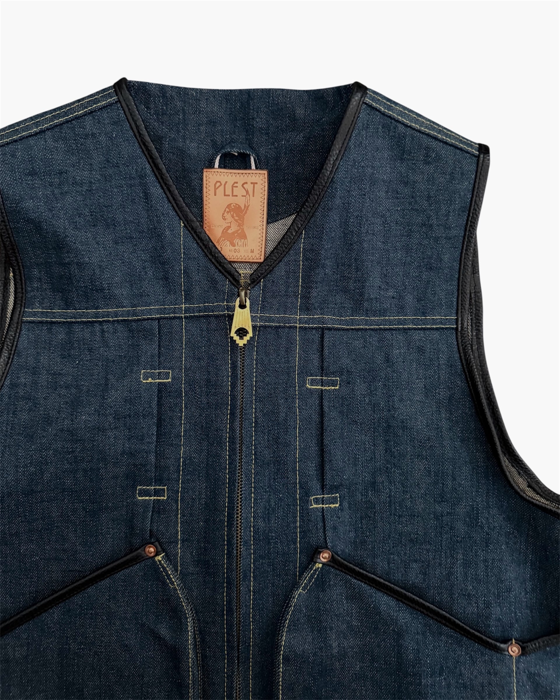 PLEST DENIM 203 ZIP UP VEST INDIGO