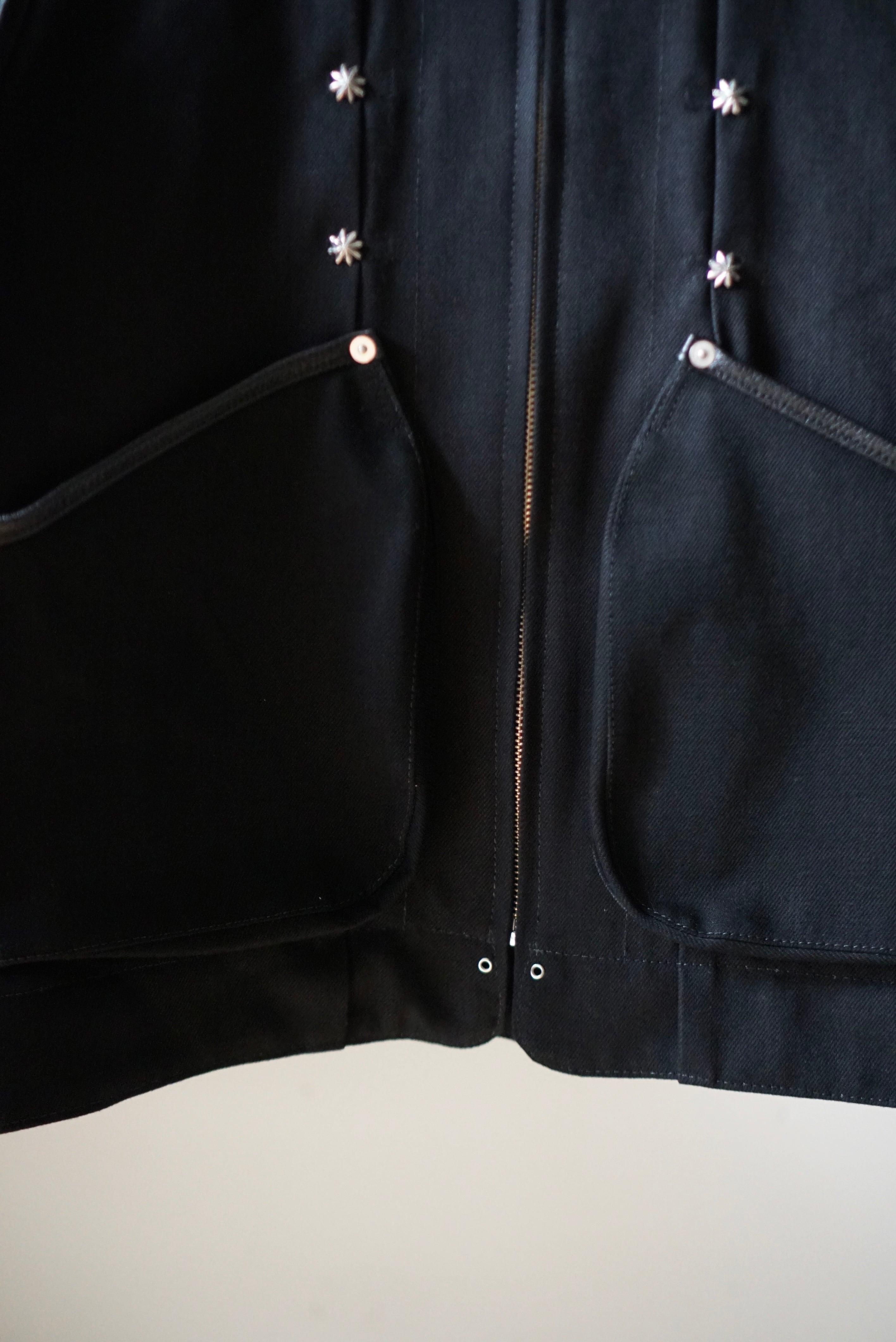 PLEST DENIM 203 ZIP UP VEST BLACK DENIM