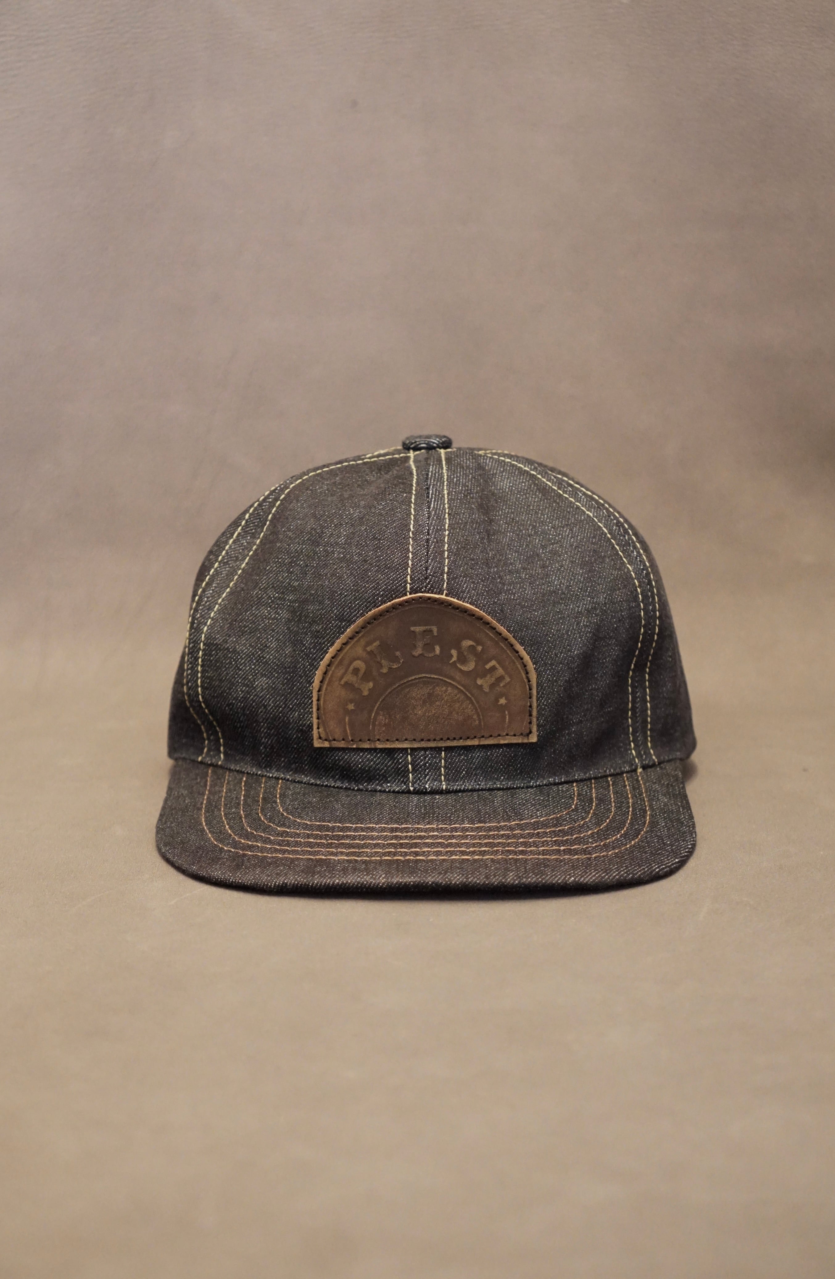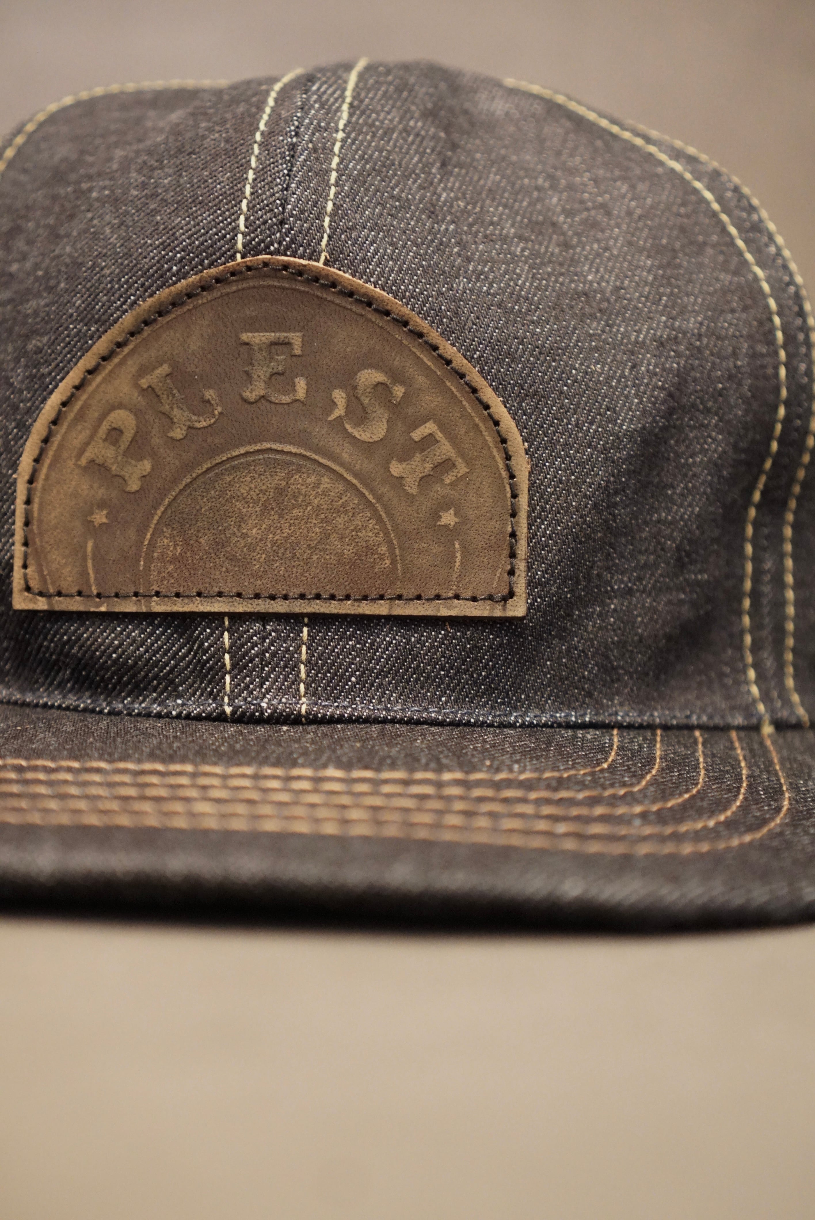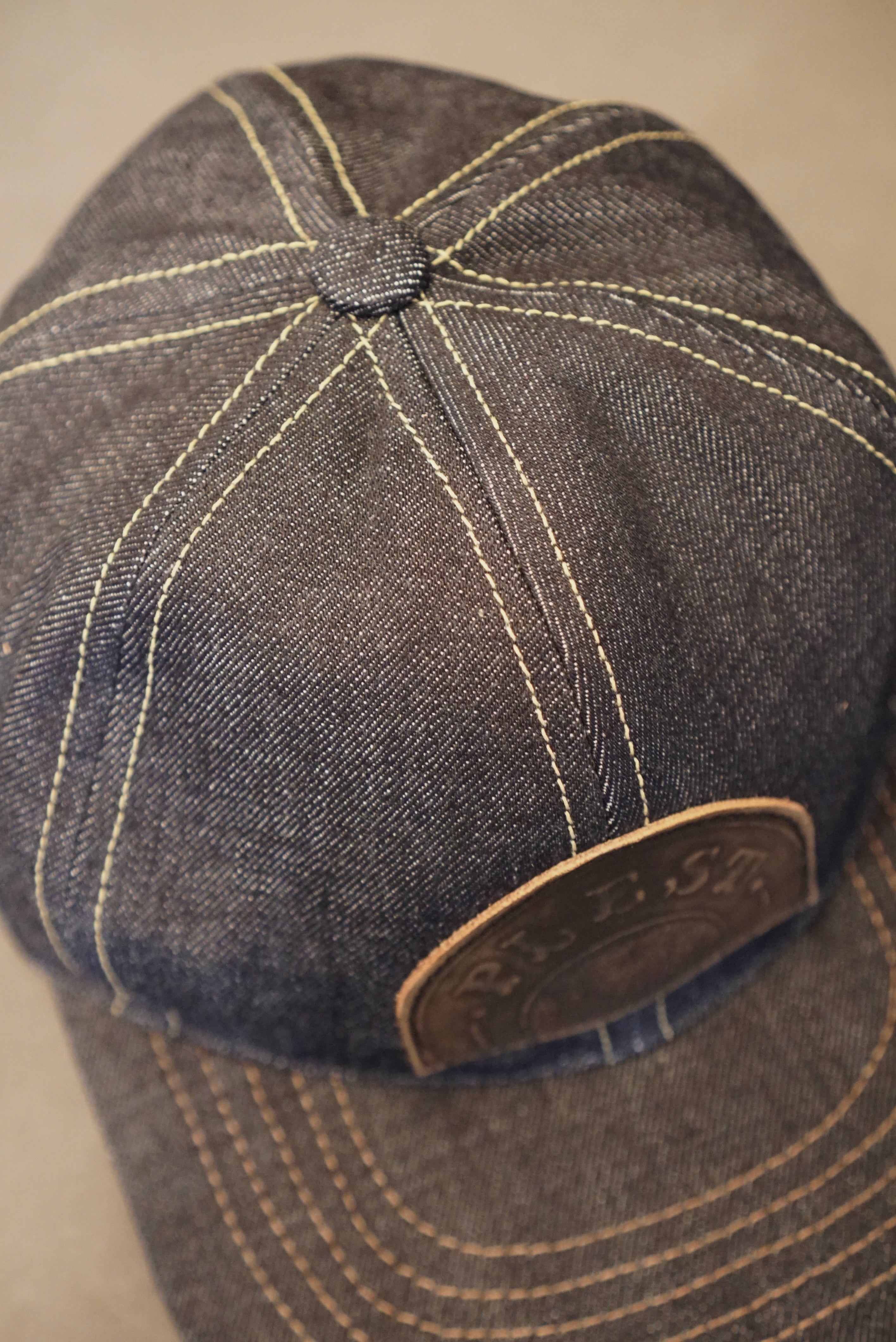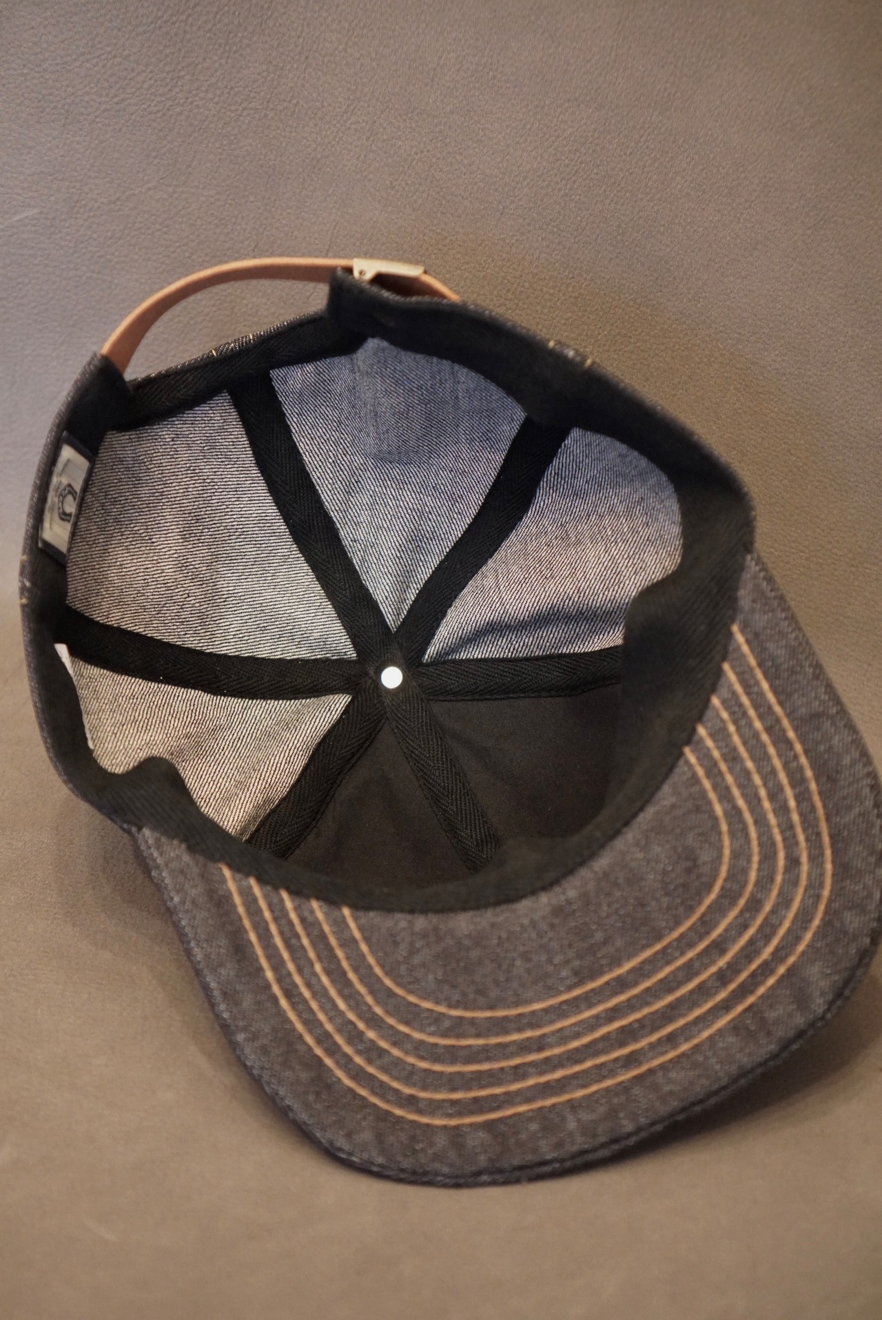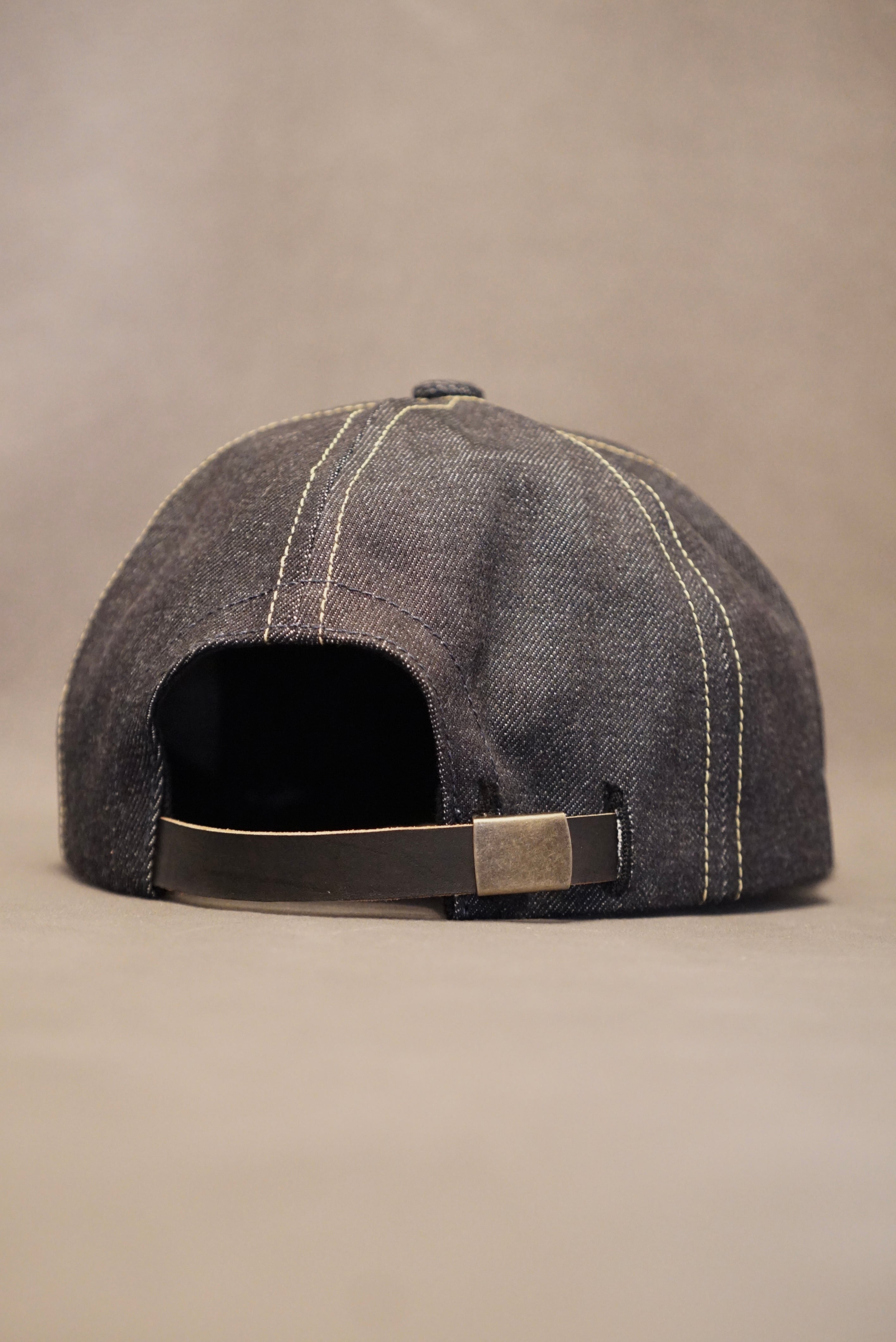 リジットデニムファブリックで仕上げたオリジナルトラッカーキャップ。