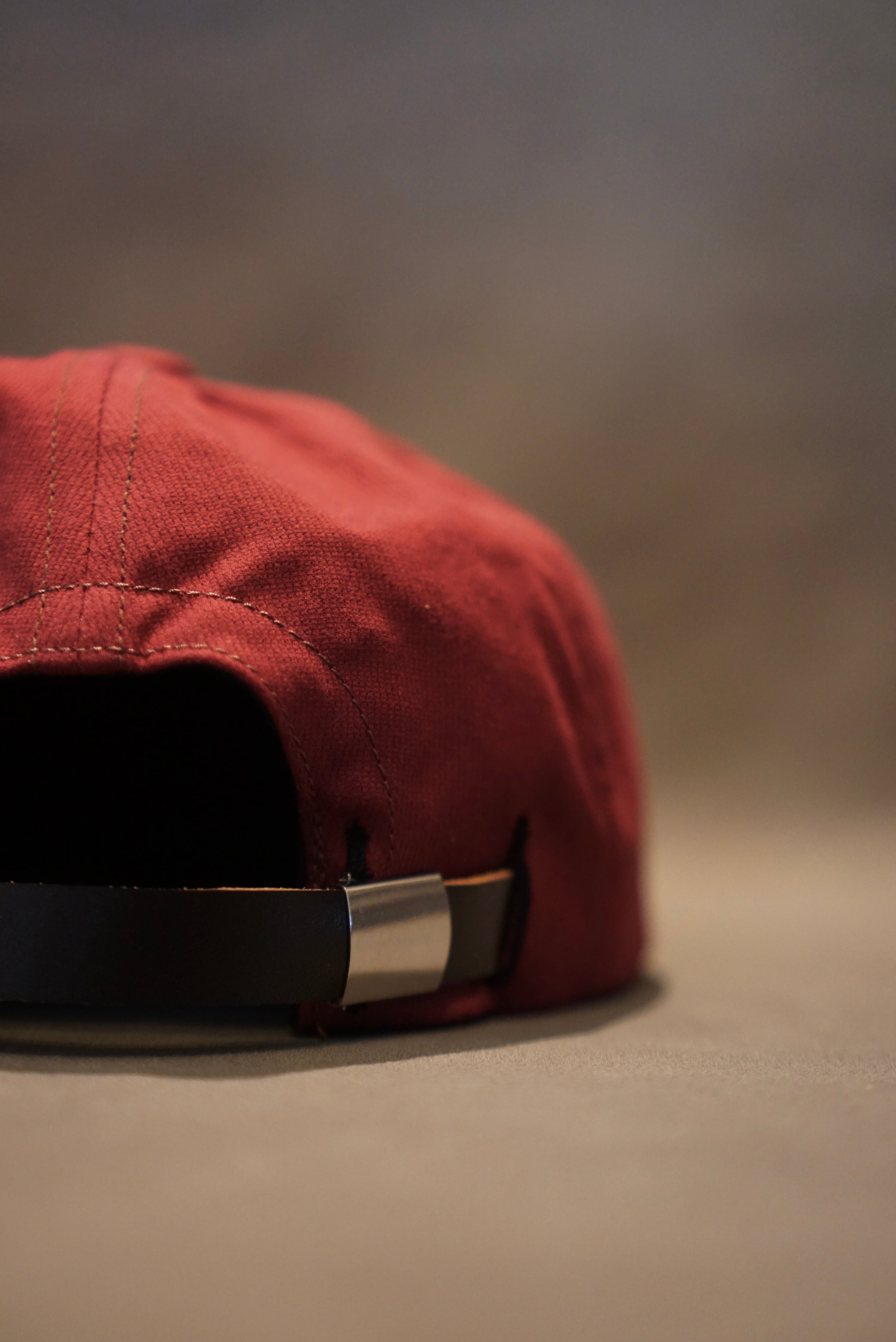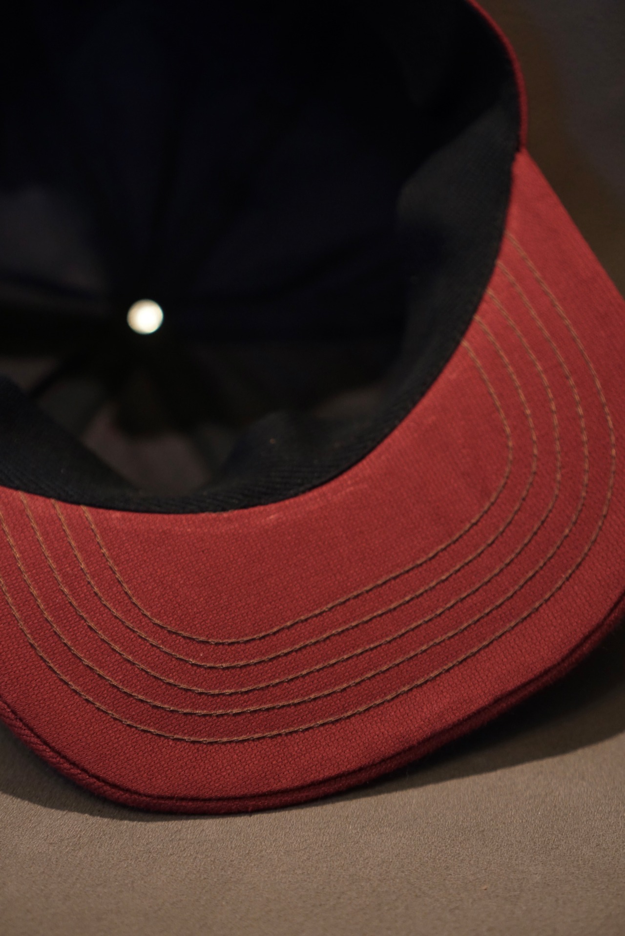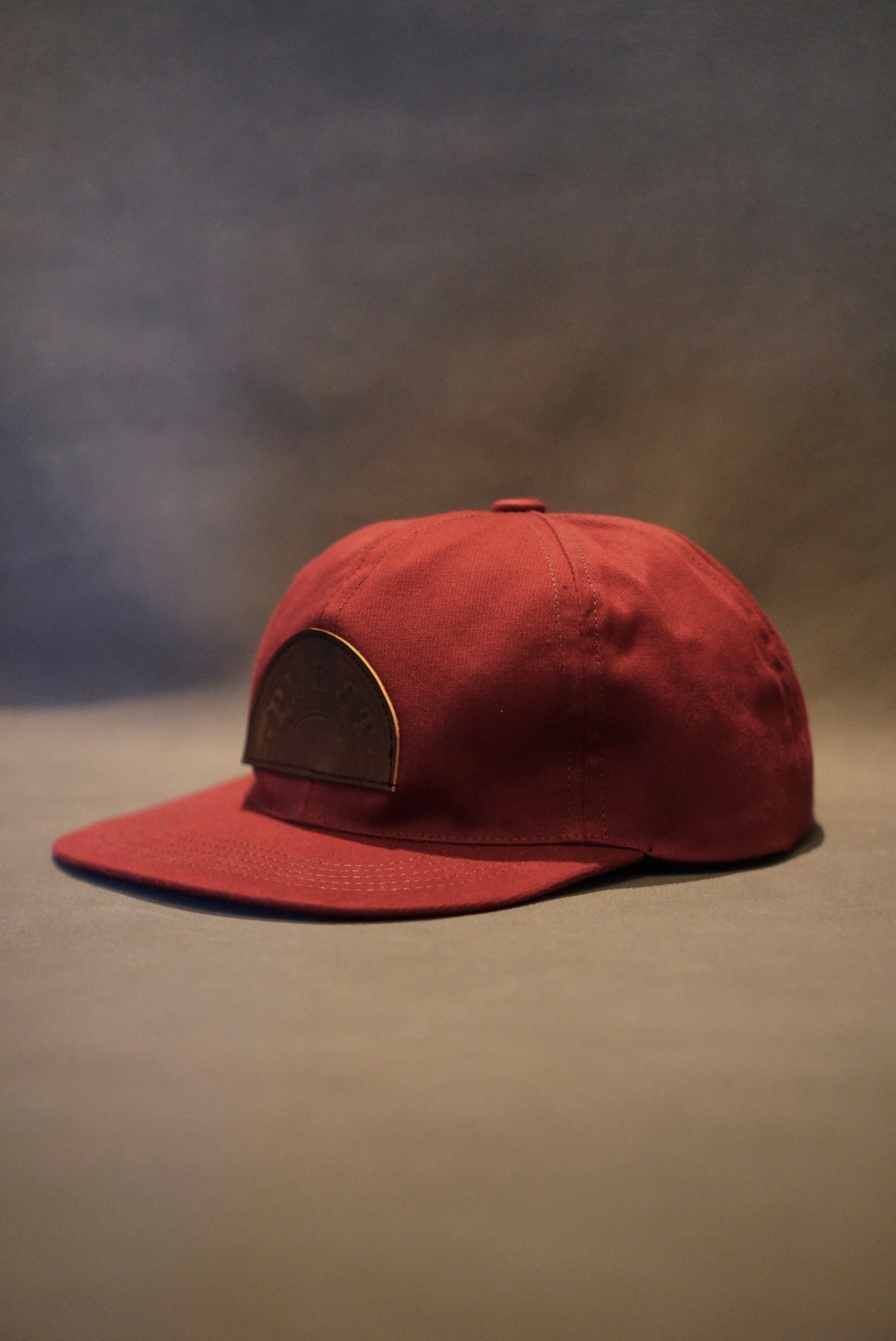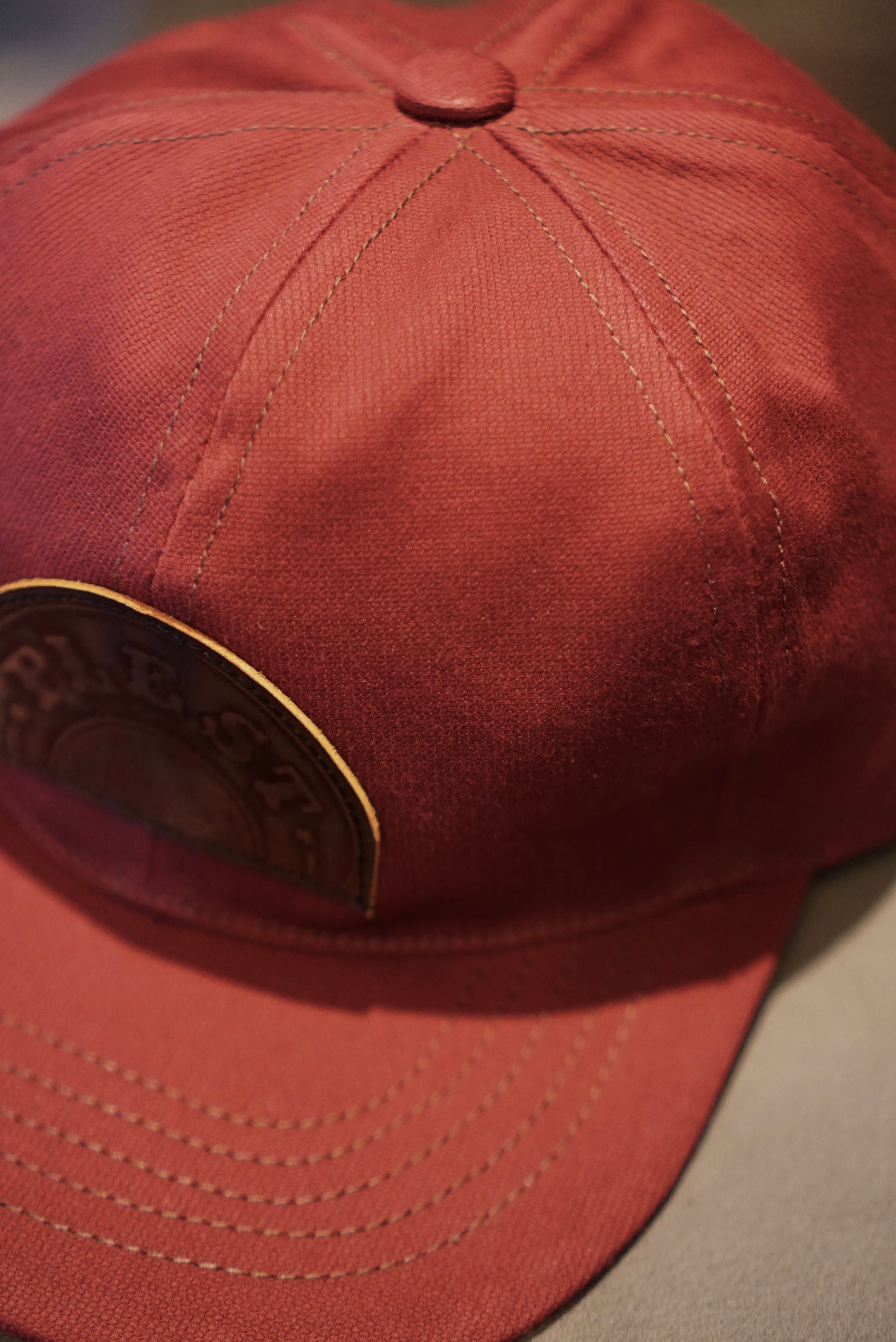 薄手のコットンピケで仕立てたワインレッドカラーのトラッカーキャップ。