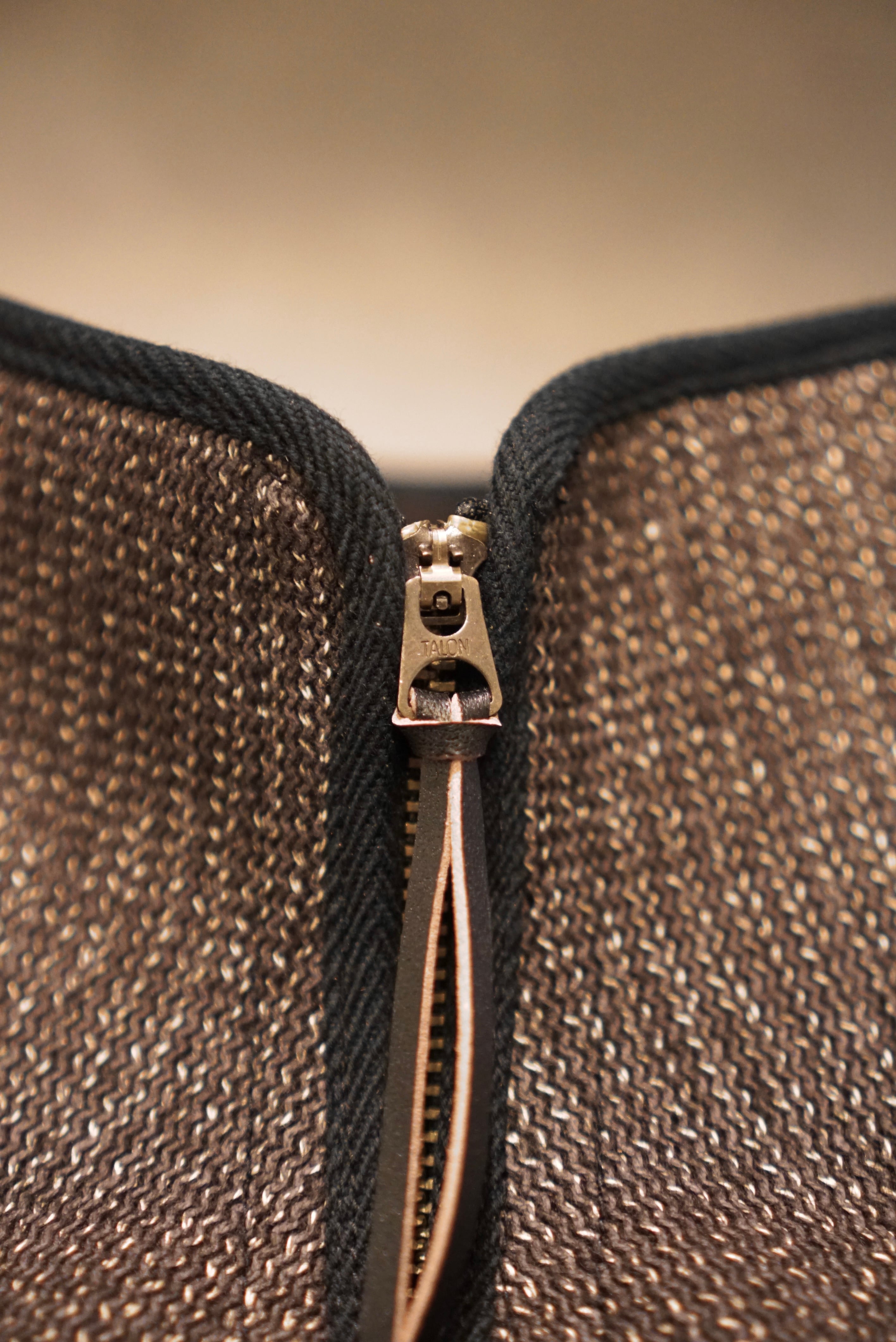 表面は網目のようなコットン、裏はウール起毛で織られている。