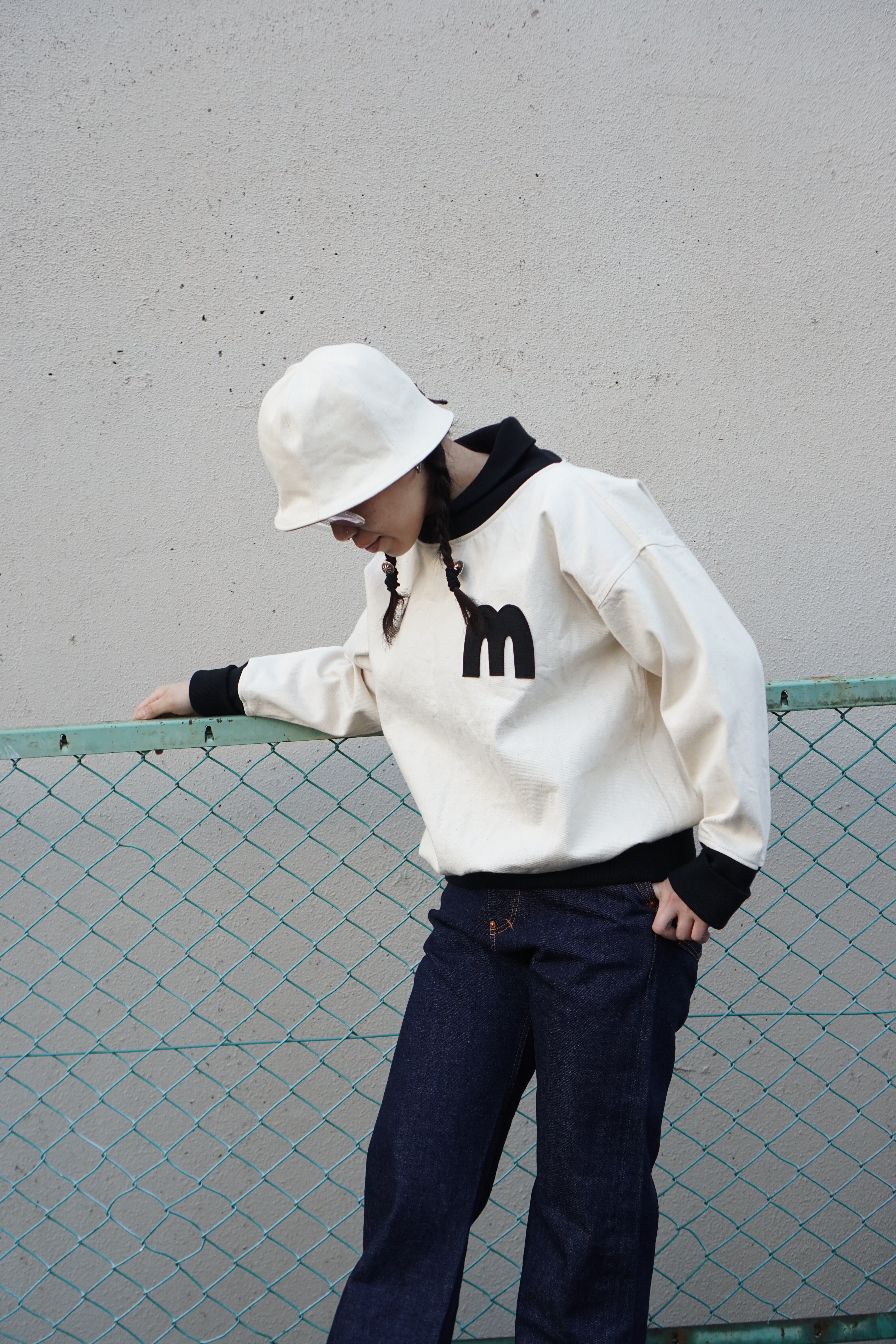 スポーツユニフォームを思わせるフェルトパッチをのせてジャージスタイルをイメージした