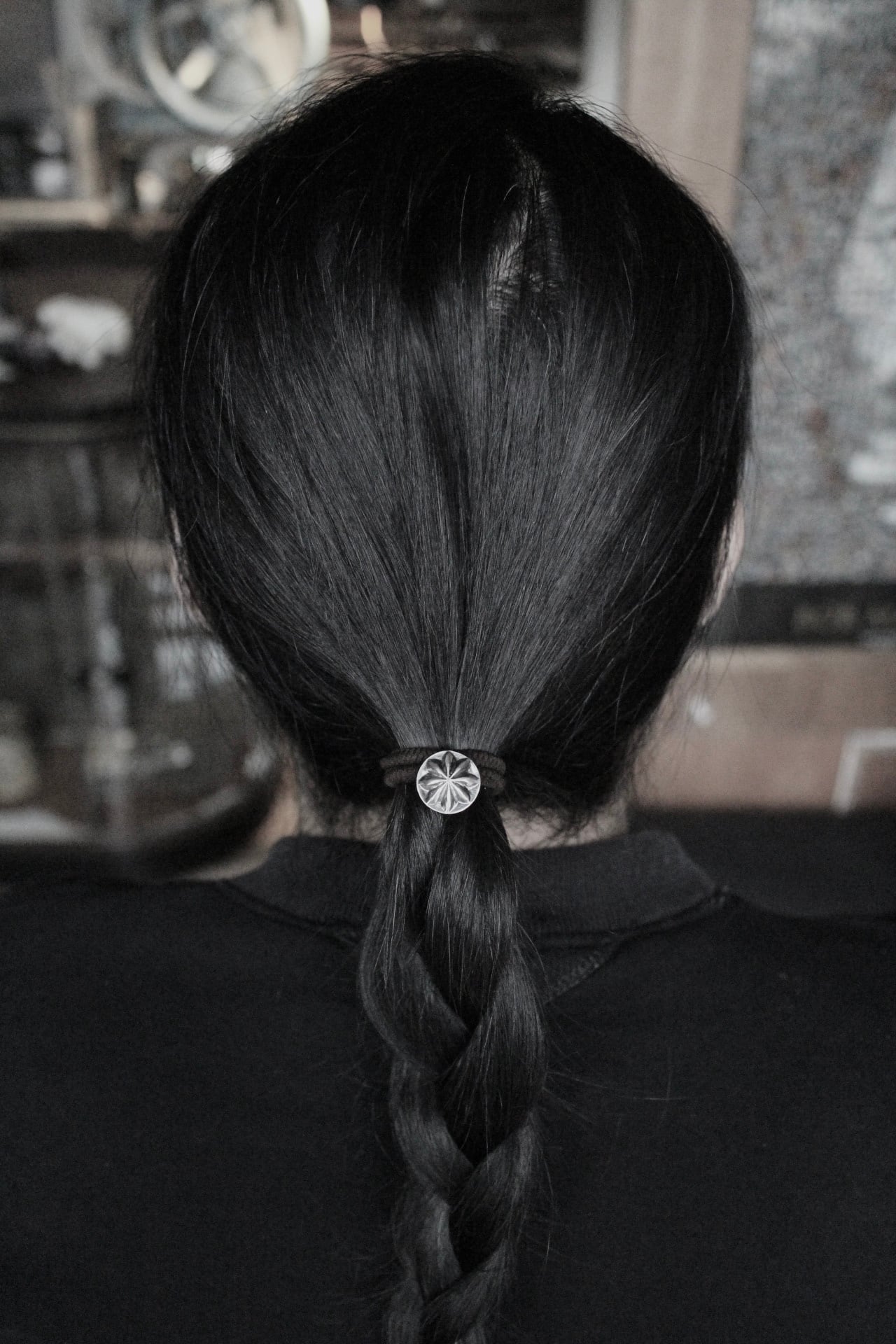 コンチョの裏にシルバーのリングが付いており、ゴムが伸びても付け替えられるため、長く使っていけるものとなっています。